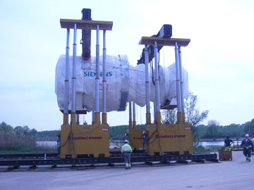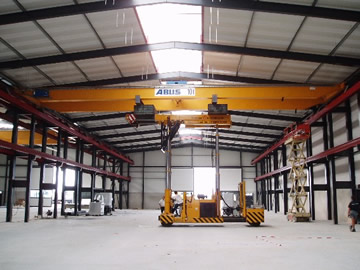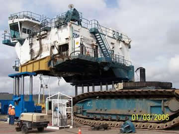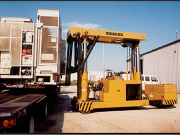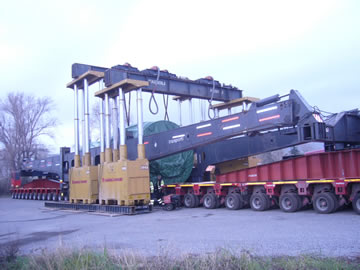 特種吊車 Trilifter,型號:TL150BW。作為吊車的起重能力為:68噸;作為叉車的叉車能力為:45噸,作為龍門吊的起重能力為:90噸。